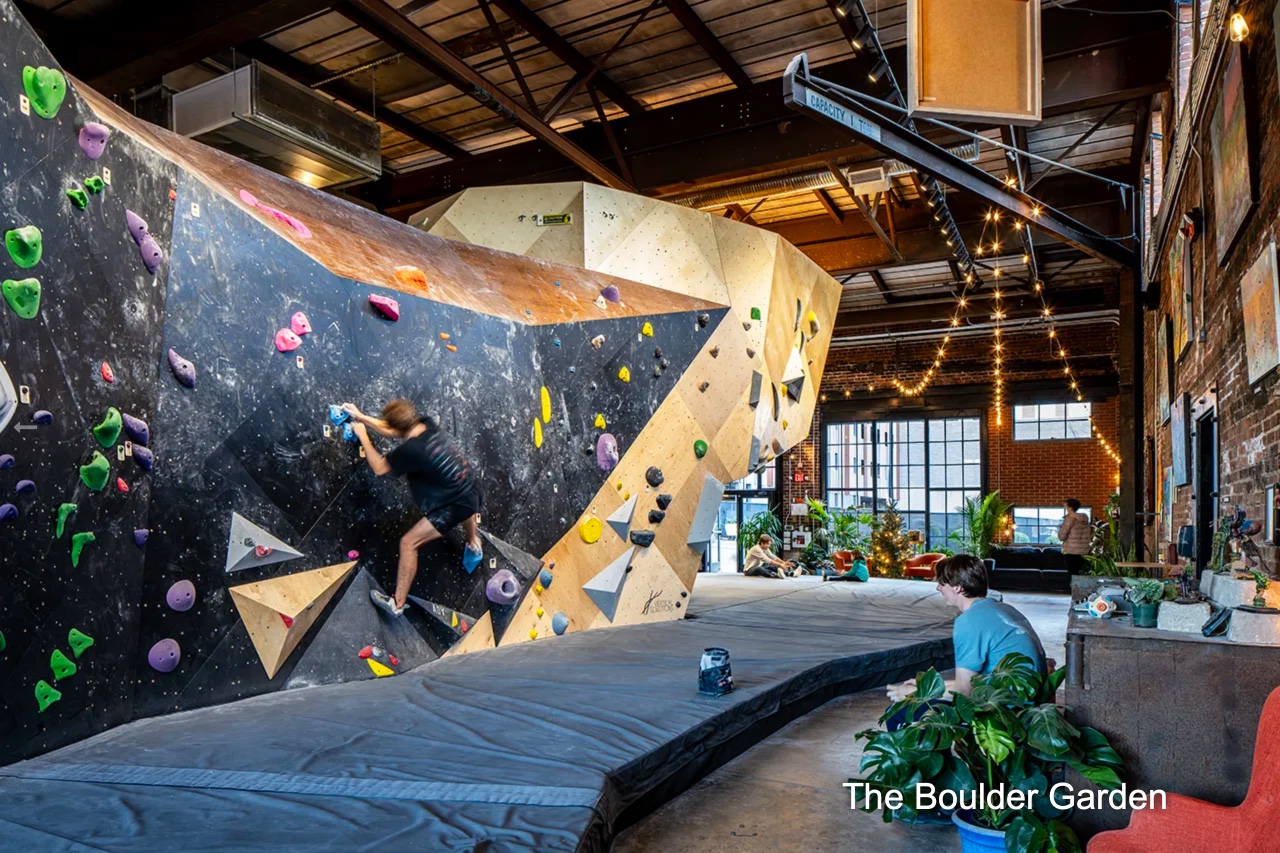 Brookwood Construction completed the adaptive reuse and interior buildout of The Boulder Garden, a boutique indoor bouldering gym located at 328 Roney Street in Durham, NC. The project transformed a former brazing and welding shop into a vibrant fitness space featuring custom bouldering walls, yoga studio, weight area, and modern restroom facilities, while preserving the character of the original building. The renovation included installation of all-new mechanical, electrical, and plumbing systems, façade restoration, upgraded glazing on existing steel windows, and life safety enhancements. The space now offers an inviting, community-driven environment aligned with The Boulder Garden brand’s focus on movement, creativity, and connection with nature.