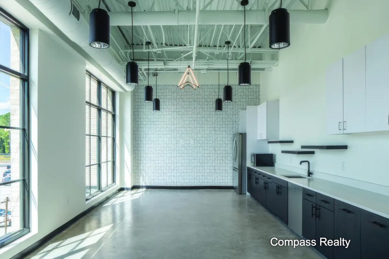 Compass Realty, a fast-growing real estate technology company, chose Brookwood Construction to provide construction services for its new Cary, NC office in the Fenton mixed-use development. Glass front perimeter offices and conference rooms extend daylight to expansive interior office areas with open ceilings and modern lighting.