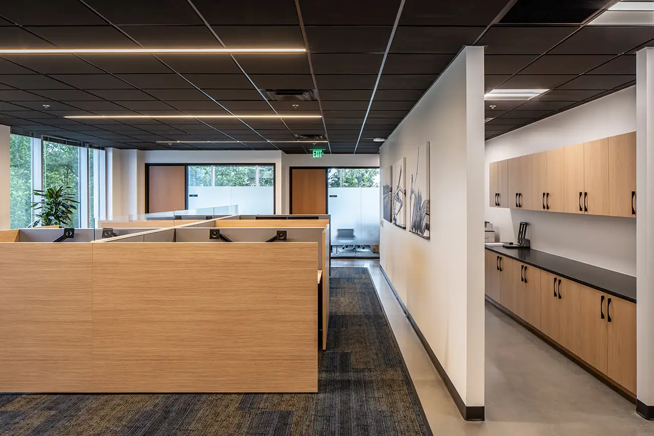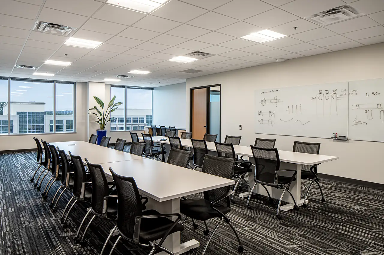 Brookwood Construction completed the interior tenant fit-up for Flatiron Corporation’s new office suite at 5438 Wade Park Boulevard, Raleigh, NC. The project transformed a 13,627 sq. ft. space on the fifth floor of an existing building into a modern, functional office environment designed to support Flatiron’s leadership in heavy civil and transportation infrastructure construction. The buildout included new private offices, open workstations, conference and collaboration spaces, a break room, and support areas, all supported by new mechanical, electrical, plumbing, and fire protection systems. The space provides a flexible and collaborative environment for Flatiron’s regional operations, aligning with its mission to deliver complex infrastructure projects that connect communities.