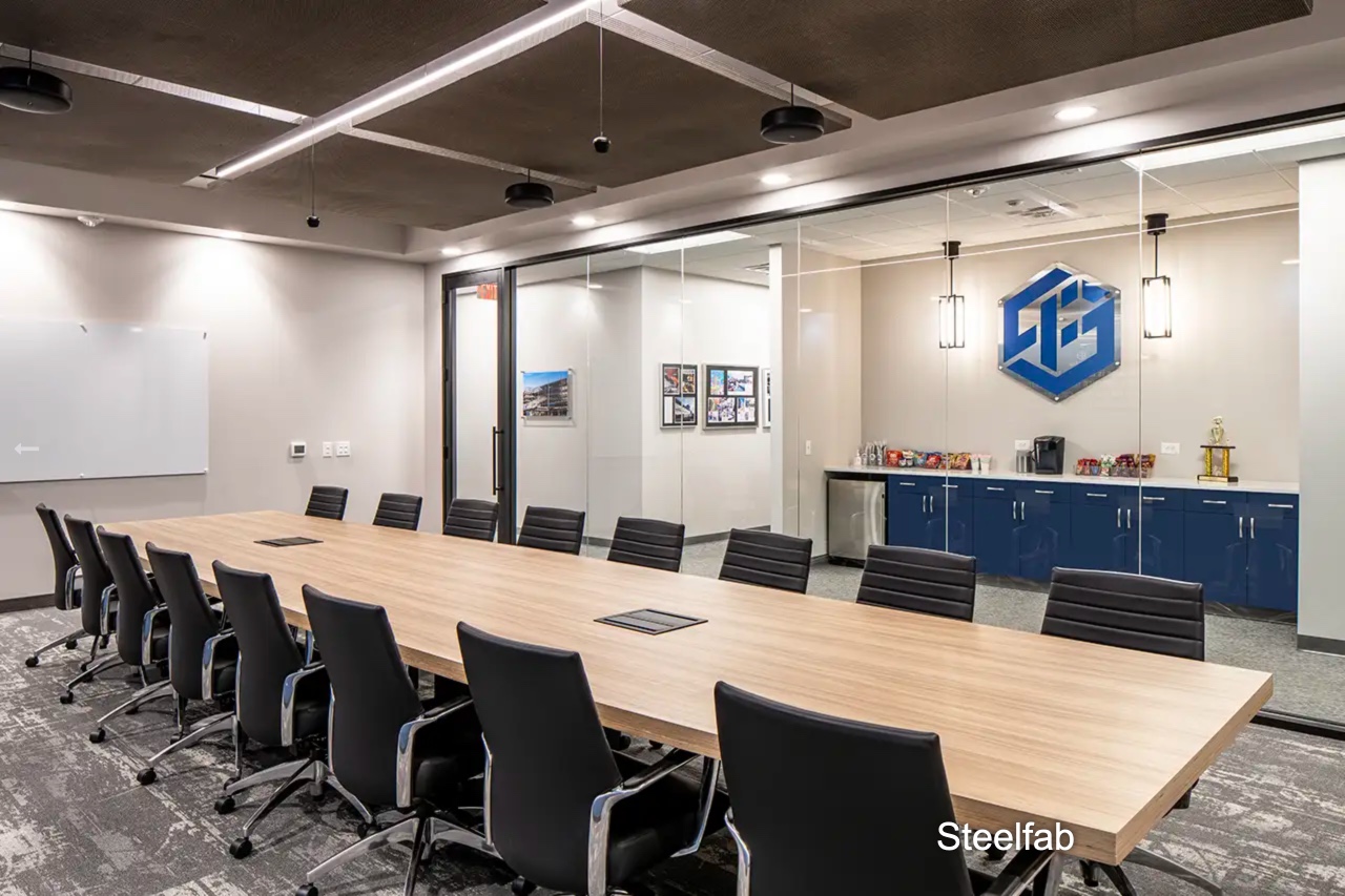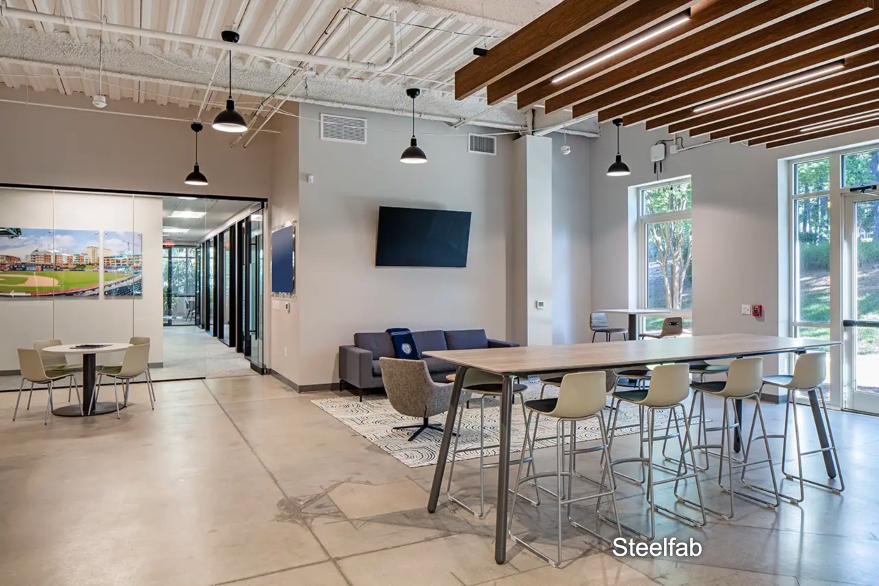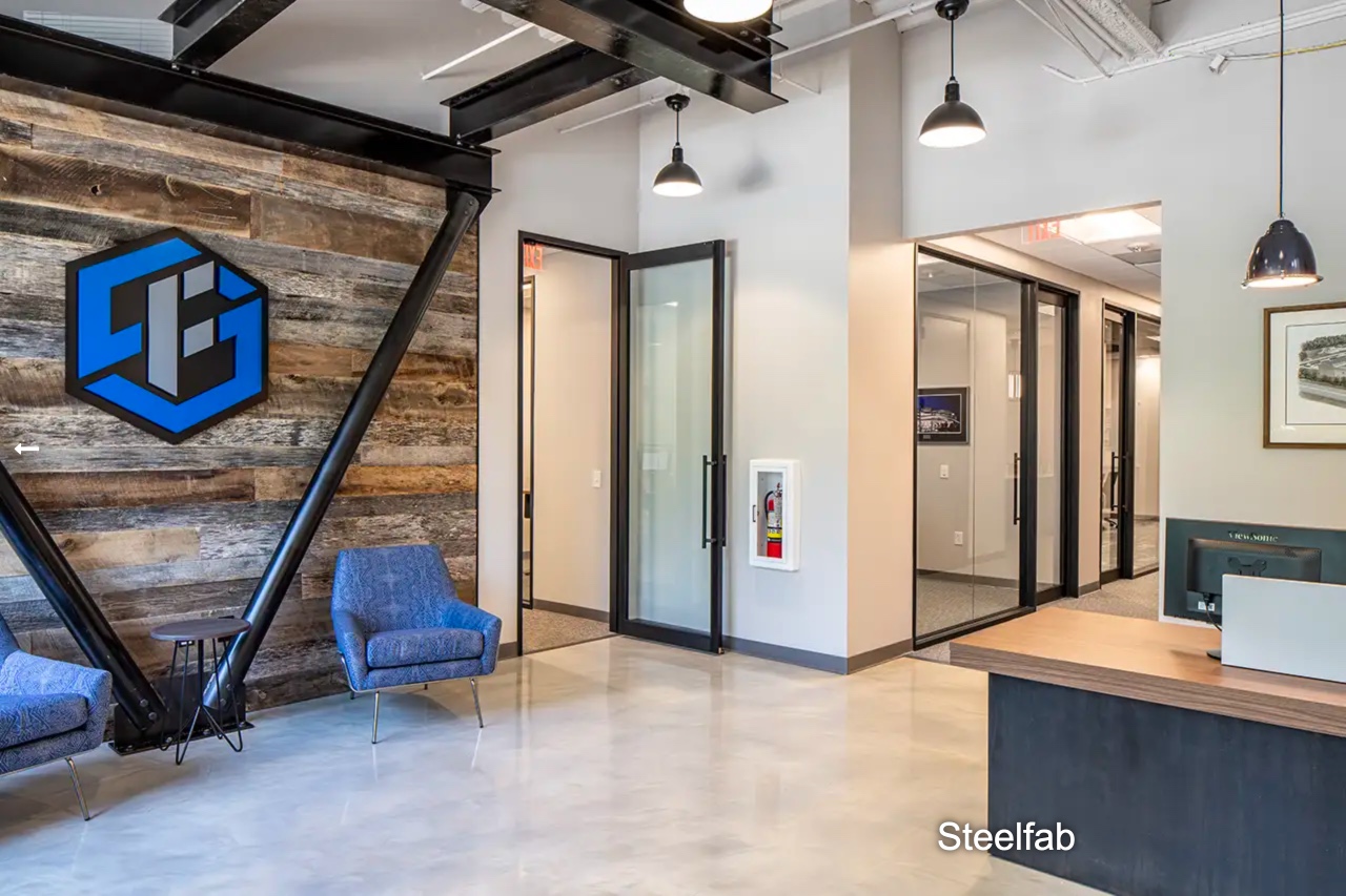 Brookwood Construction completed the interior renovation of SteelFab’s Raleigh office at 4909 Western Blvd., a space designed to support the company’s role as one of the nation’s largest structural steel fabricators. The project transformed approximately 12,000 sq. ft. of space into a modern workplace with a mix of executive and private offices, open collaboration areas, conference rooms, breakroom, IT/server room, and reception area. The scope included upgrades to mechanical, electrical, plumbing, and fire alarm systems, enhanced finishes, new lighting and ceiling treatments, and the integration of audio-visual infrastructure and specialty glass storefronts. The new office supports SteelFab’s continued growth and leadership in delivering structural steel solutions for complex construction projects nationwide.