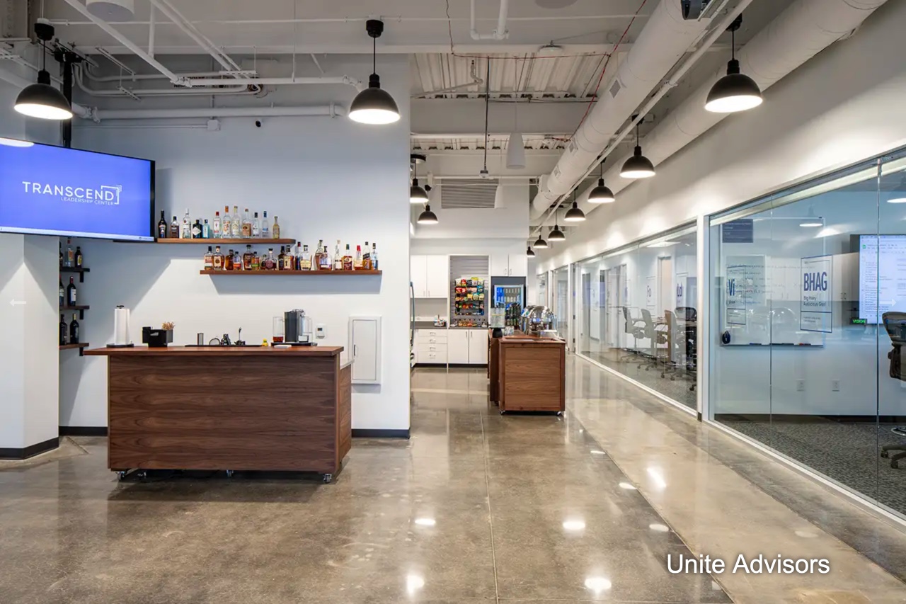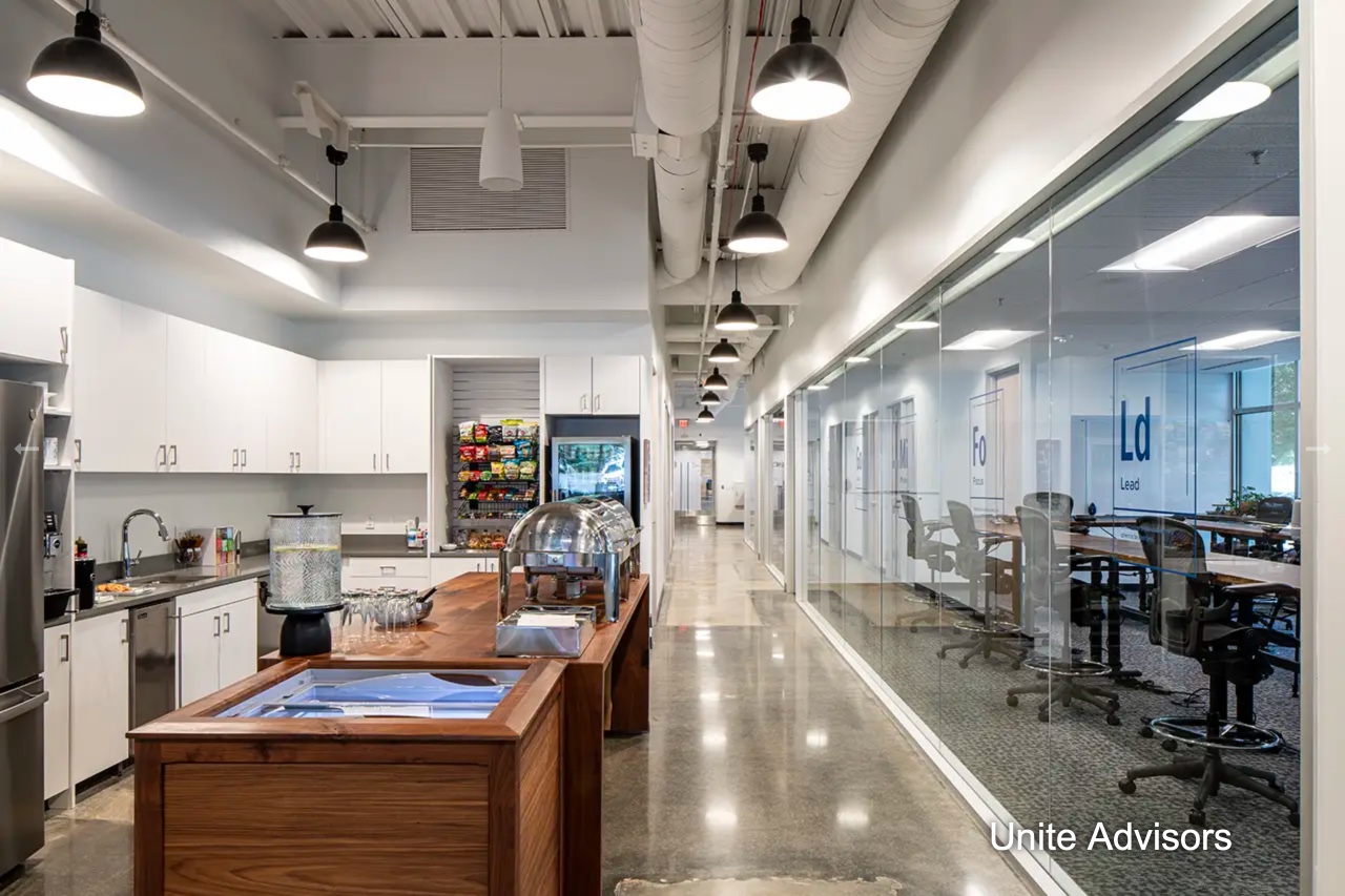 Brookwood Construction completed the interior fit-up of Unite Advisors’ new office suite at 8041 Arco Corporate Drive, Raleigh, NC, supporting the firm’s work in strategic financial advisory and capital markets consulting. The project transformed approximately 2,945 sq. ft. into a modern, collaborative work environment that includes a welcoming reception area, multiple conference rooms, open office spaces, private offices, phone rooms, storage areas, and a lounge/break area. Key design features include open ceiling treatments, glass wall systems for conference spaces, and custom millwork that reflect Unite Advisors’ forward-thinking brand. The finished space provides a flexible, professional environment aligned with Unite’s mission to empower clients through independent, insightful financial guidance.